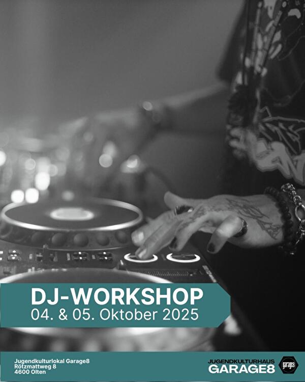 - Am am Samstag, 04. und Sonntag, 05. Oktober findet in der Garage8 der nächste DJ-Workshop statt. Lerne in diesem zweitägigen Workshop alles was du rund ums DJing wissen musst. Gemeinsam mit dem erfahrenen DJ MikeL lernst du alles was du über Equipement, Software und Techniken wissen musst um deine eigenen Sets zu spielen. Vorwissen ist für diesen Workshop nicht nötig. Du brauchst nur einen Laptop, auf dem du eine DJ-Software installieren kannst und idealerweise einen USB-Stick mit deinen Lieblingstracks. Die DJ-Controller werden zur Verfügung gestellt und können auch für die Dauer des Workshops mit nach Hause genommen werden um weiterzuüben.